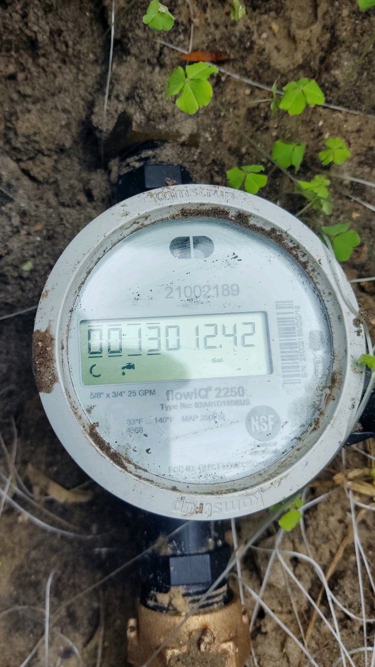 The meter shown above reads 13012 Gallons. To find out how much water you have used, subtract the number identified on your bill as “Current” from the current reading on your meter. Using the meter above for example: If your “Current” reading on a bill is 10712 and we subtract it from the above reading, we find that 2300 gallons have been used.